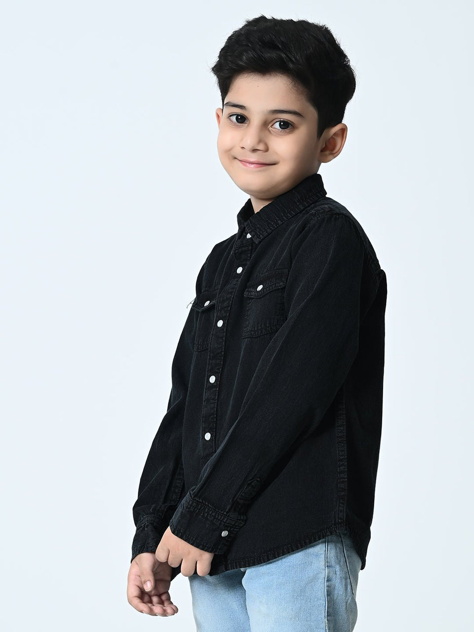 Available in size 9-10 years, our model showcases the impeccable fit and style of this shirt. Elevate your little one's fashion game with this versatile and timeless piece.